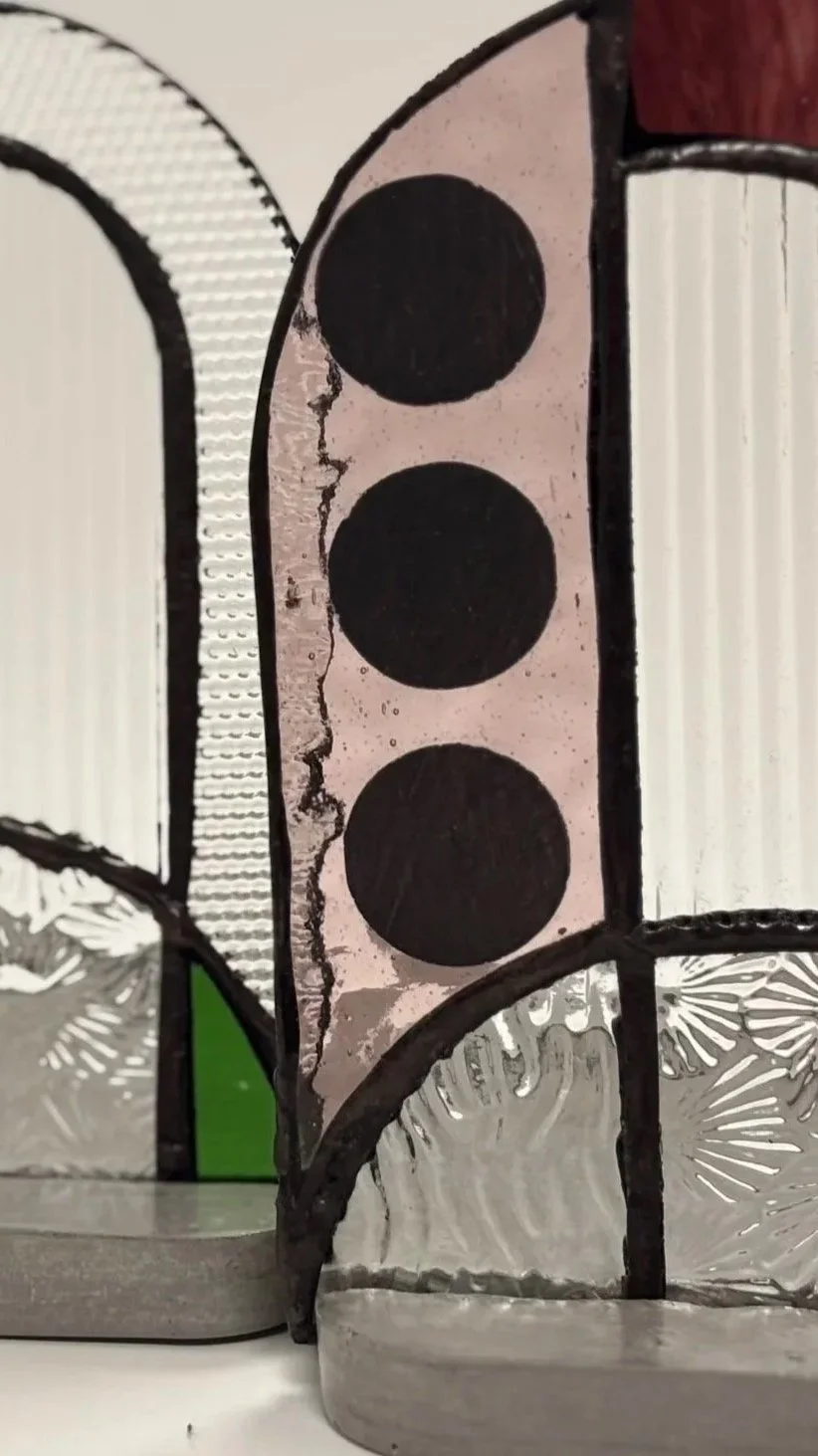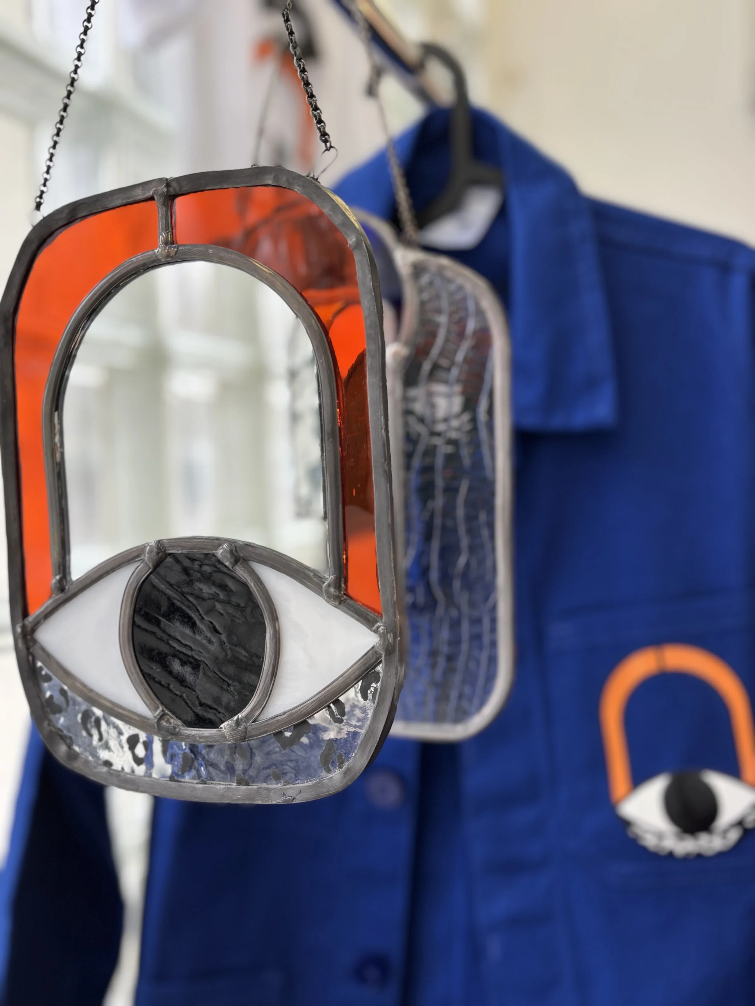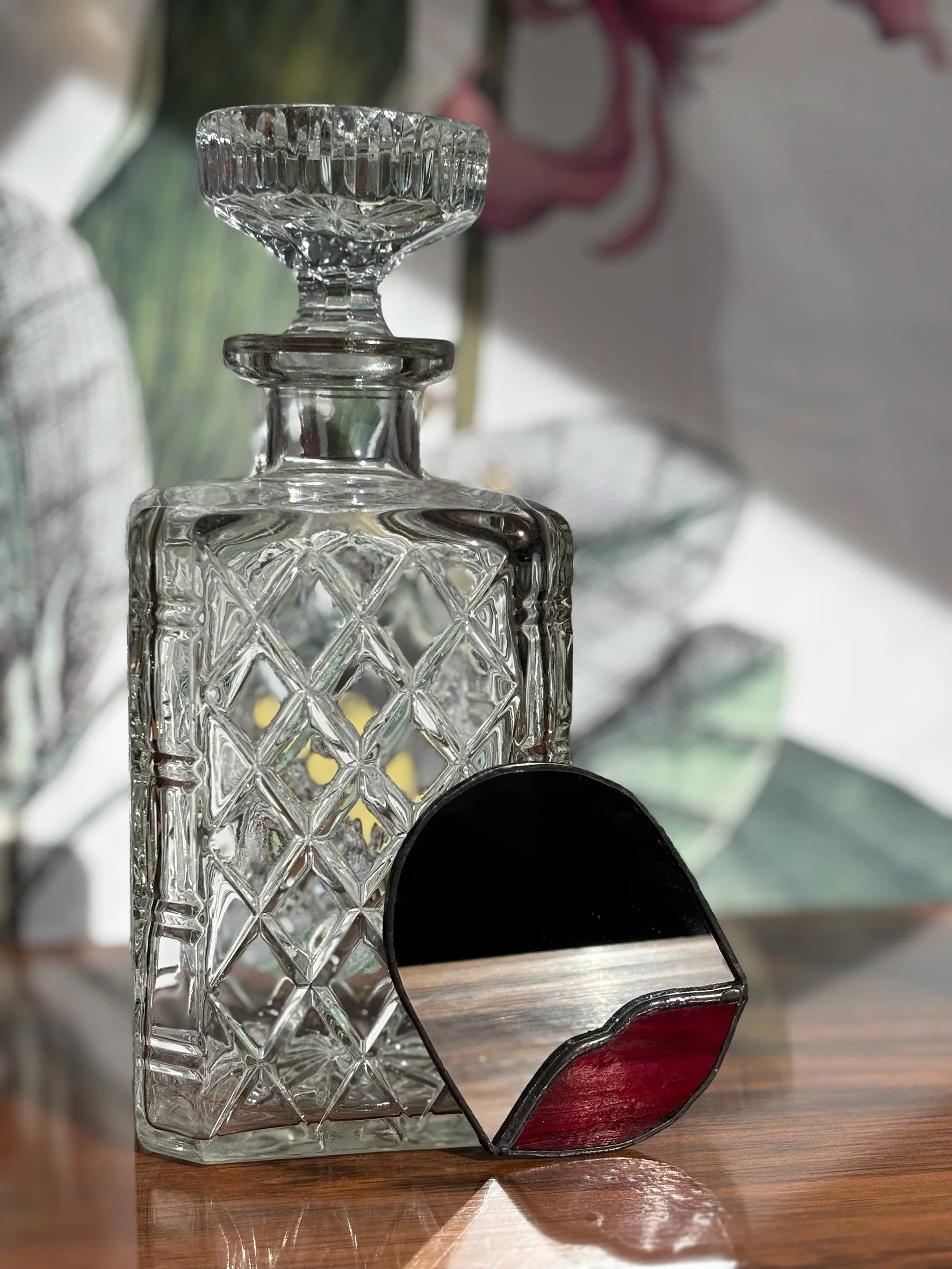 En parallèle des vitraux réalisés pour l’architecture, Sandie Jancovek dessine également des objets de verre à taille plus intime : miroirs, bougeoirs et pièces singulières.
